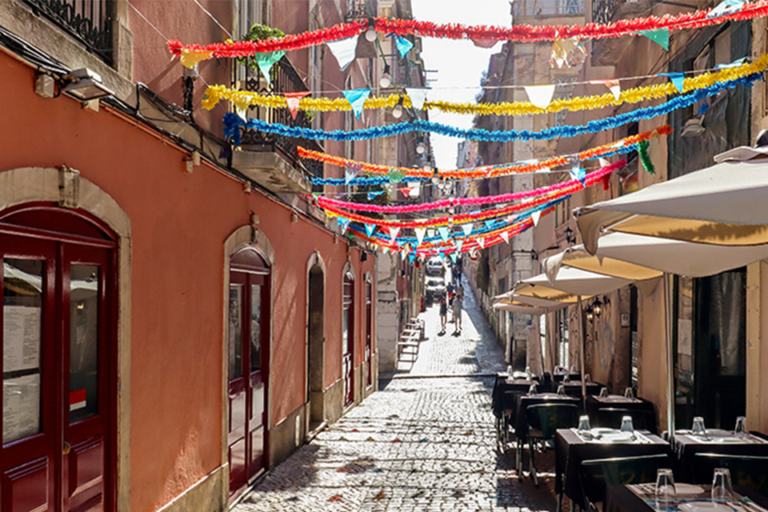 Alfama is a historic neighbourhood and known for its narrow streets, historic architecture, and vibrant cultural scene. Discover the neighbourhood’s rich cultural heritage as you navigate its steep, cobbled streets and explore its many cultural offerings, including its numerous churches, museums, and traditional fado music clubs. Take in the breath-taking views from the top of its hilltop castle, the Castelo de São Jorge, which offers panoramic views of the city and the river below. Enjoy the neighbourhood’s vibrant atmosphere, with numerous street vendors, cafes, and restaurants serving traditional Portuguese cuisine. Immerse yourself in the history of Alfama, with historic landmarks such as the Lisbon Cathedral, a stunning example of Gothic architecture.